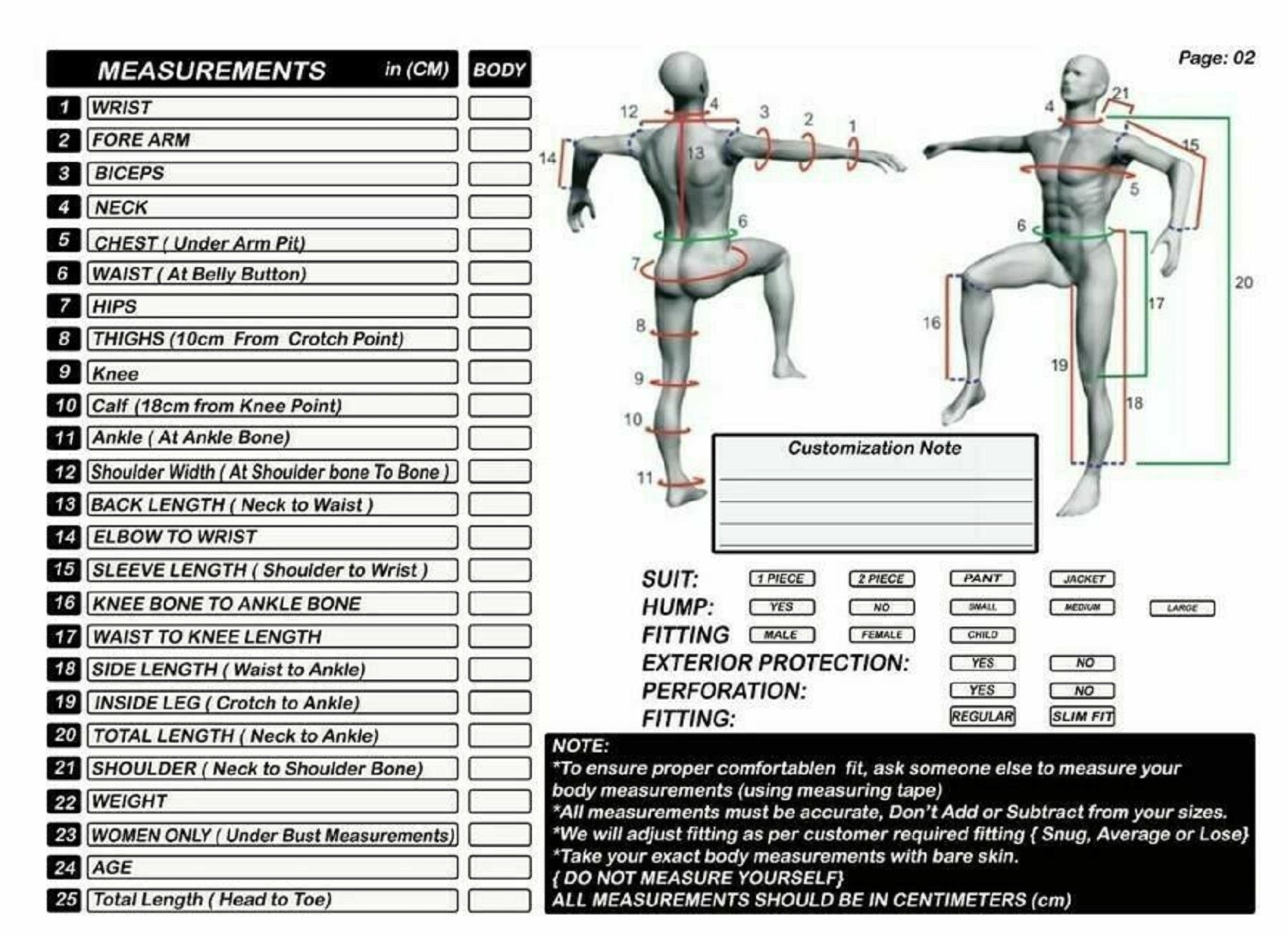 2) External shoulder, knee and elbow protectors, if present in the displayed pic of the suit or else, if requested by customer. (No extra charges)